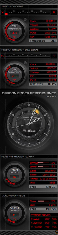 66-AIDA64 Carbon Ember Sensor Panel with Analogue Clock 480x1920